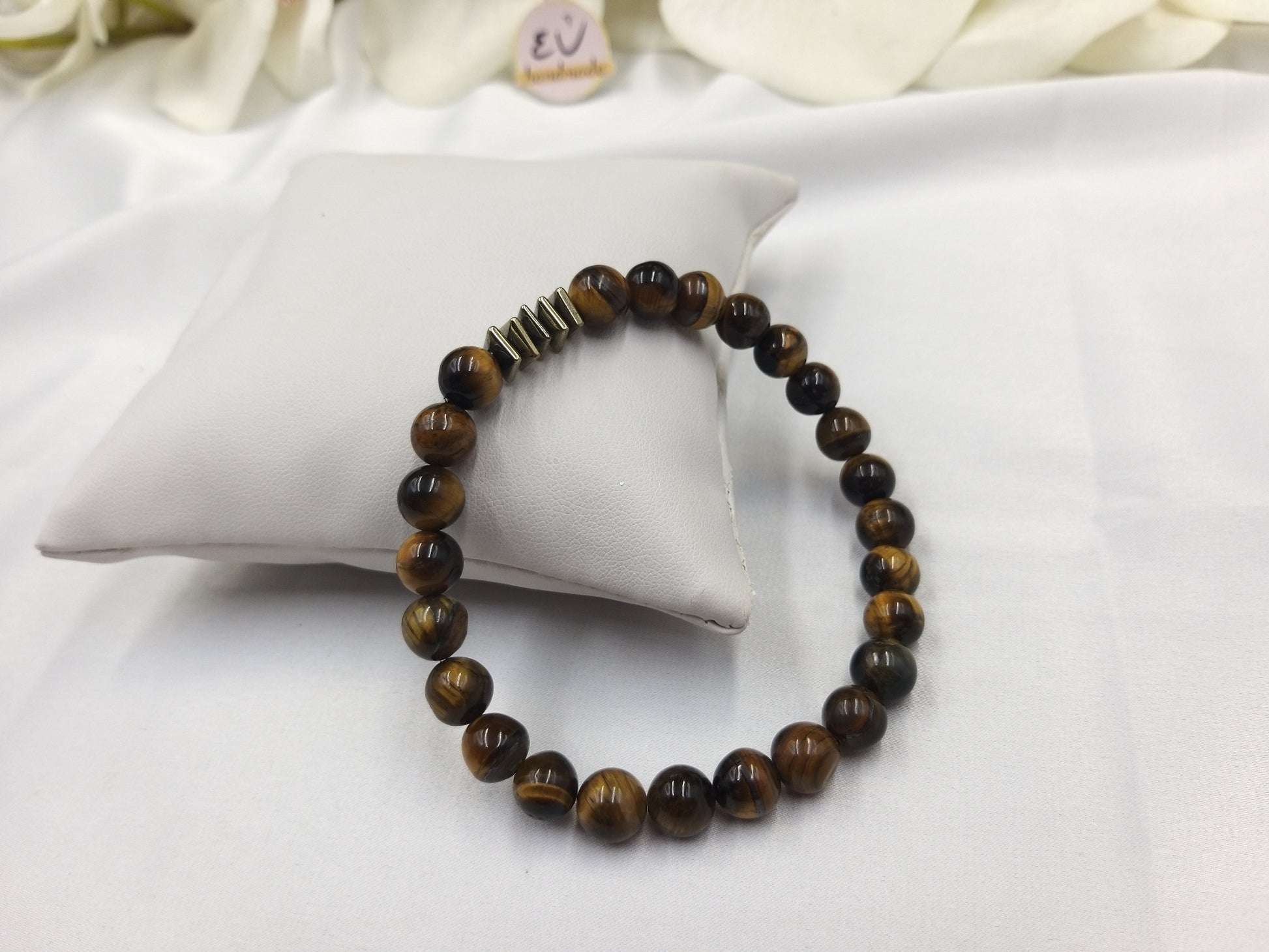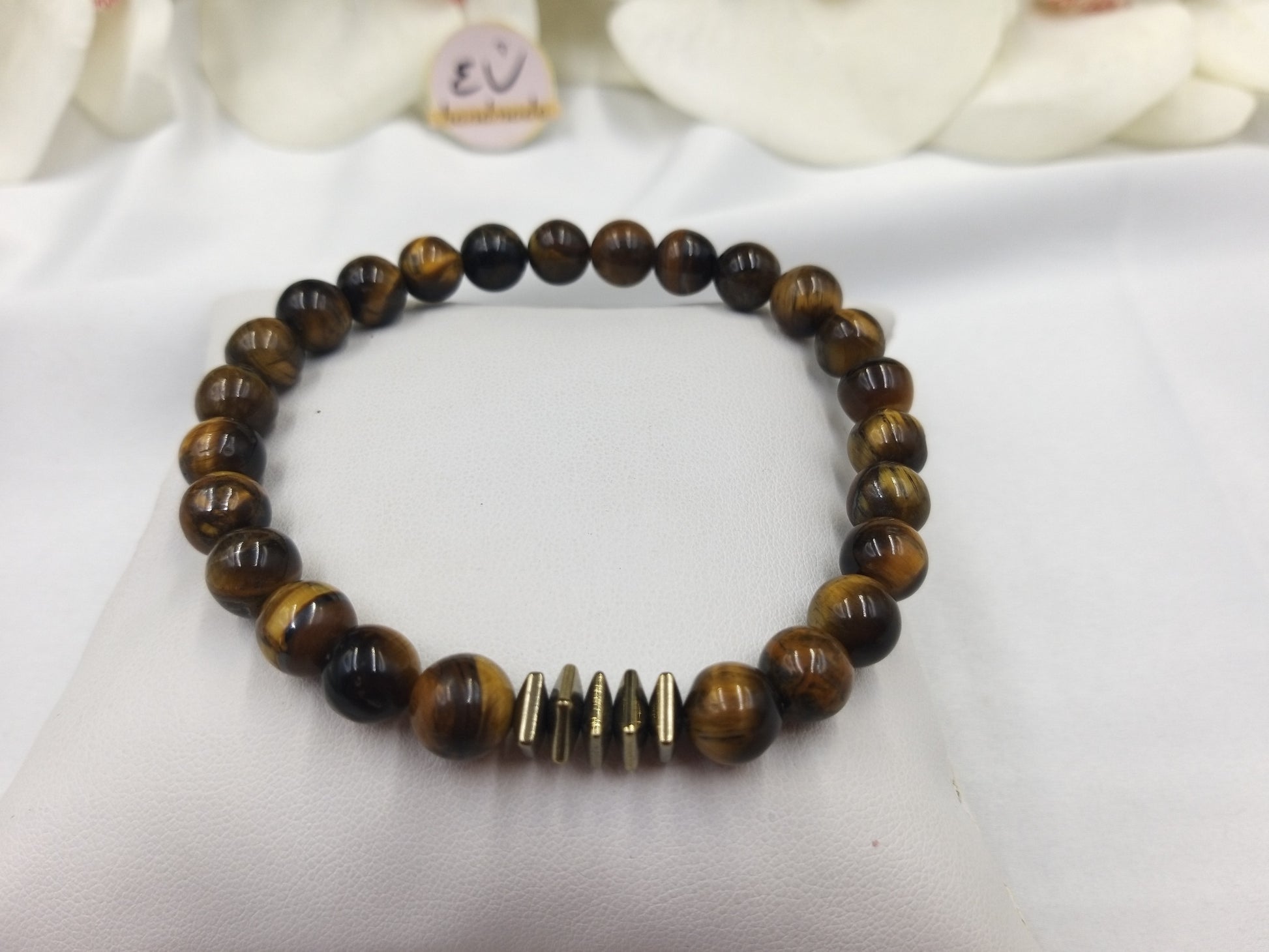 Χειροποίητο ανδρικό βραχιόλι με καφέ πέτρες μάτι της τίγρης
