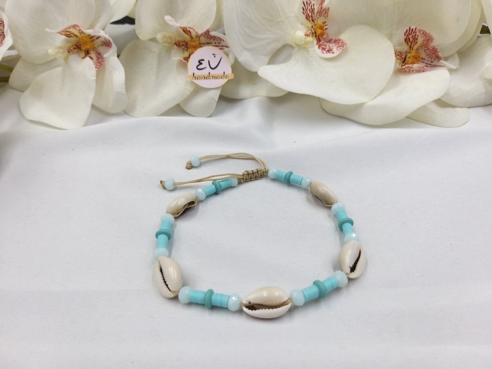 Χειροποίητο βραχιόλι ποδιού με κορδόνι και κοχύλια