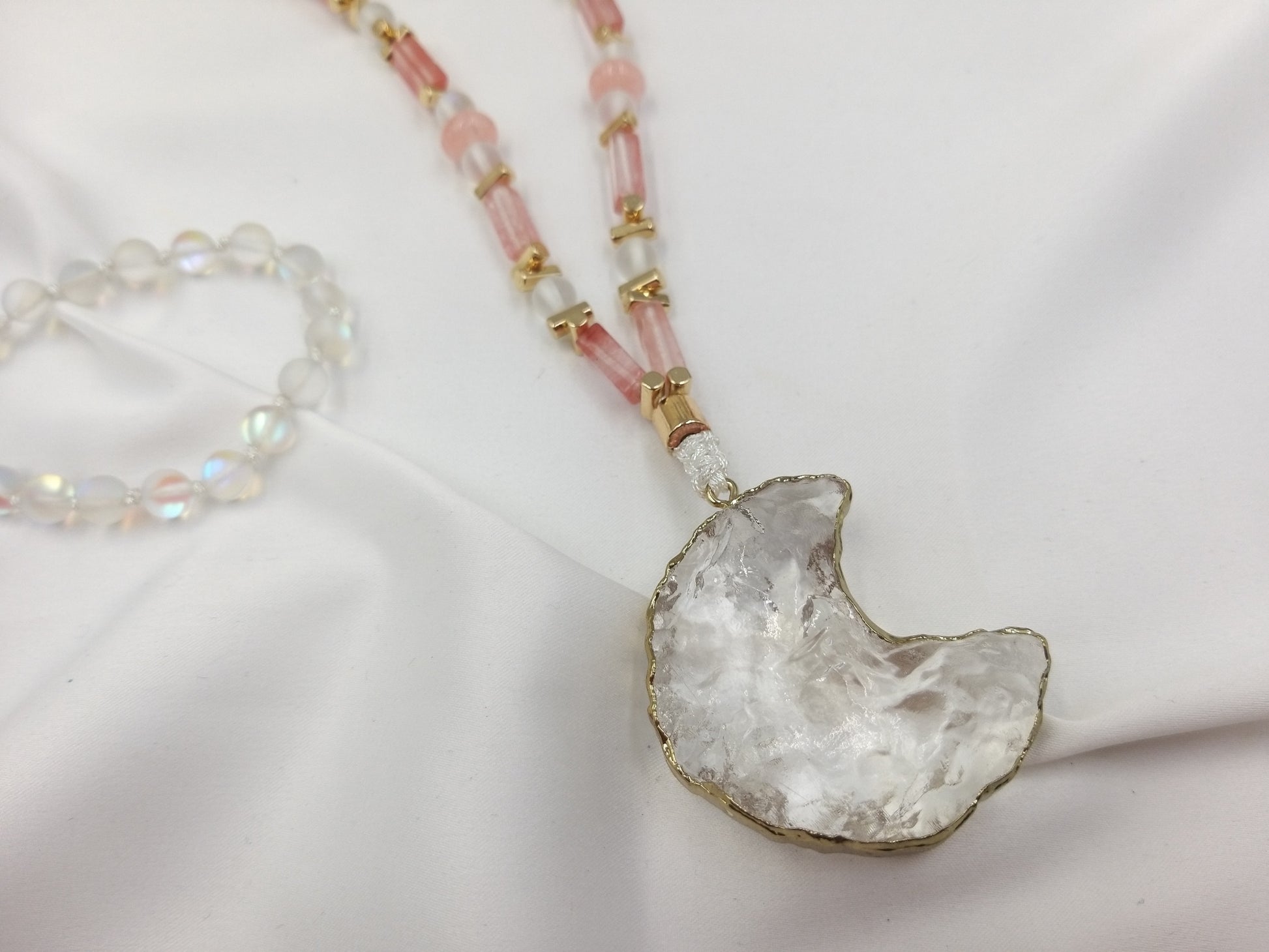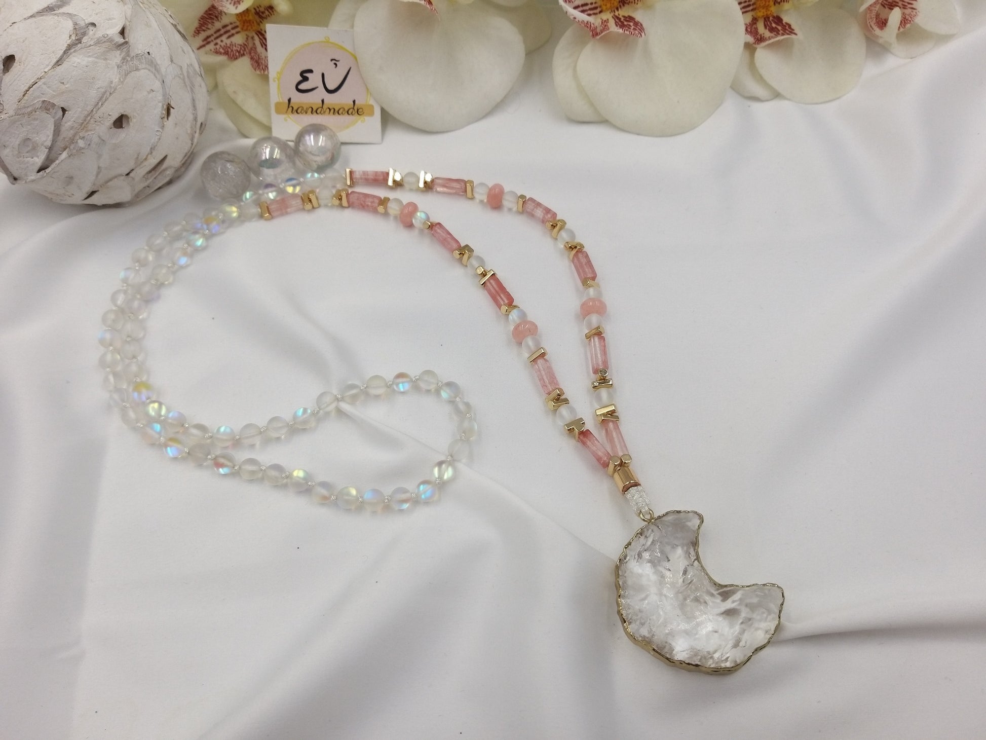 Χειροποίητο γυναικείο κολιέ φεγγάρι λευκού χαλαζία